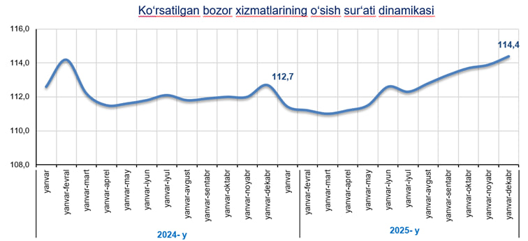 Farg‘ona viloyati statistika boshqarmasining bergan dastlabki ma'lumotiga ko‘ra, 2025- yil yanvar-dekabr oylarida norasmiy va yashirin iqtisodiyotni baholash bo‘yicha o‘tkazilgan statistik kuzatuvlar natijalarini hisobga olgan holda, bozor xizmatlari hajmi 71 765,9 mlrd so‘mni tashkil etdi. 2024- yil mos davriga nisbatan o‘sish sur’ati 114,4 % ni tashkil etib, uning hajmi esa 14 985,3 mlrd so‘mga o‘sishi qayd etildi.