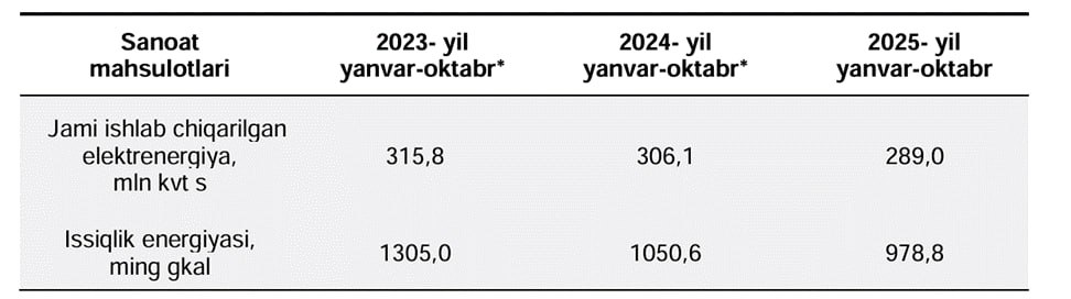 Farg'ona viloyati statistika boshqarmasi bergan ma'lumotiga ko'ra, 2025- yilning yanvar-oktabr oylarida Farg'ona viloyatida elektr gaz bug‘ bilan ta’minlash va havoni konditsiyalashda 4 585,0 mlrd so‘m miqdorida qayd etilgan.