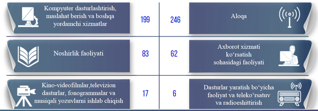 2025-yil yanvar oyi holatiga viloyatda xizmatlar eksporti hajmi 1,0 mln AQSH dollarini yoki jami eksport hajmining 2,5 % ini tashkil etib, 2024- yilning mos davriga nisbatan 80,3 % ga ko‘paydi.