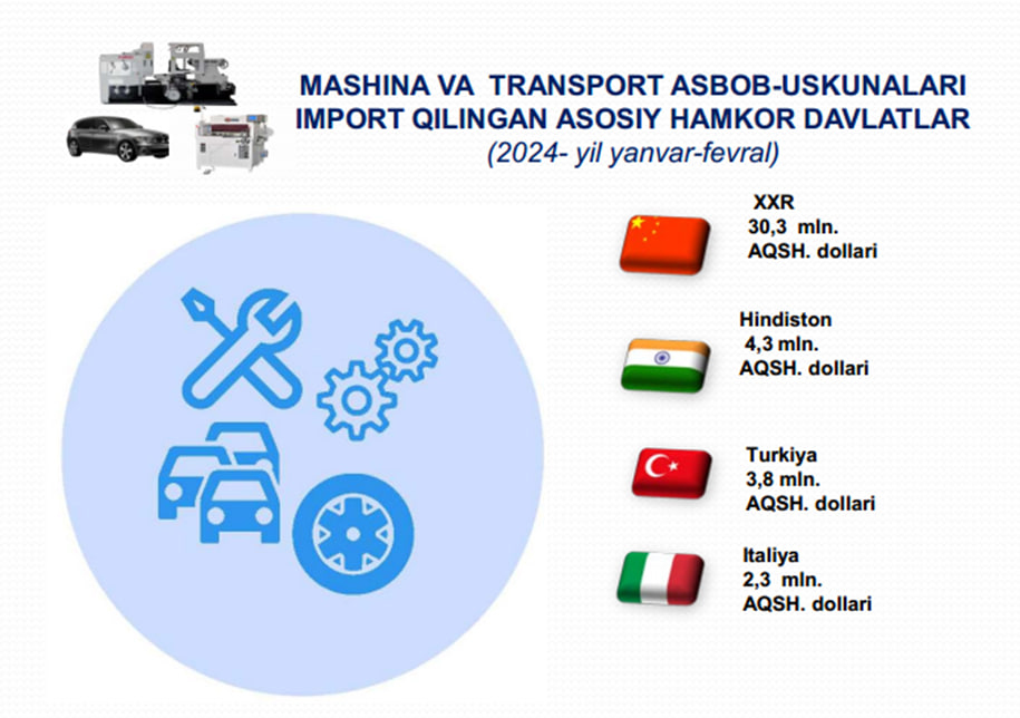 2024- yil yanvar – iyun oylarida Farg‘ona viloyati 62 ta davlatdan tovar va xizmatlar importini amalga oshirdi.