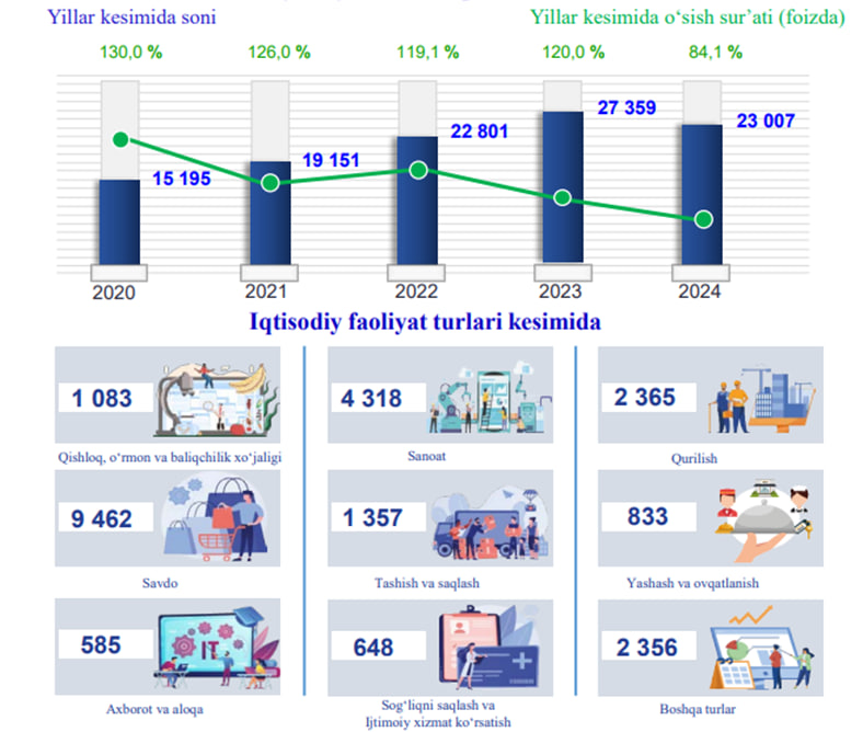 2024-yil yanvar-mart oylari yakuni bo‘yicha 71,9 mln. AQSH dollarilik to‘qimachilik mahsulotlari eksporti amalga oshirilib, umumiy eksportning 53,7 %ini tashkil etib, o‘tgan yilga nisbatan 6,1 %ga ko‘paydi. Yil boshidan 91 turdagi to‘qimachilik mahsulotlari dunyoning 22 ta davlatiga eksport qilindi.