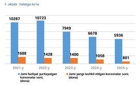 2025-jyilning yanvar-sentabr oylarida kichik tadbirkorlik 55 509,1mlrd so‘mni tashkil etdi (2024- yilning yanvar-sentabr oylarida - 47 762,3 mlrd so‘m). YAHMdagi ulushi 71,8 % ni (2024- yilning yanvar-sentabr oylarida – 72,3 %) tashkil qildi.