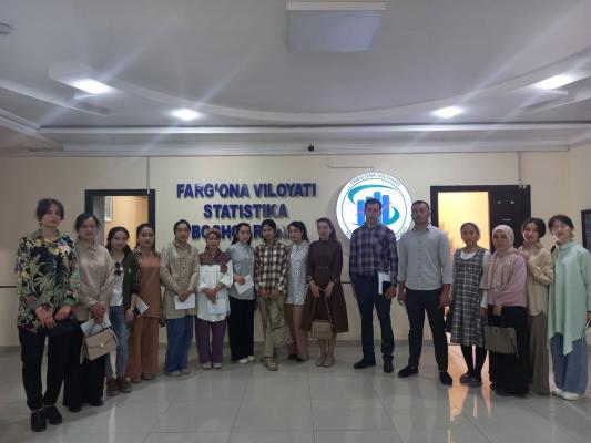 Kuni kecha viloyat statistika boshqarmasida “Ochik eshik”lar kuni o‘tkazildi. Bu kuni Farg‘ona Davlat Universitetining “Geografiya” yo‘nalishidagi 1- bosqich talabalari tashrif buyurdilar. Tadbirda boshqarma axborot xizmati bosh mutaxassisi B.Maksudova tomonidan talabalarga boshqarmada faoliyat ko‘rsatayotgan tarmoq bo‘limlarining ish faoliyati bilan tanishtirib, u xususan O‘zbekistonda so‘nggi yillarda statistika tizimini tubdan takomillashtirish, chet el statistikasida keng qo‘llanilayotgan, xalqaro talablar va standartlarga mos keladigan statistika tahlili, ko‘rsatkichlari, baholash mezonlari va hisobot shakllarining sinovdan o‘tgan zamonaviy usullarini amaliyotga joriy etish, ijtimoiy-iqtisodiy islohotlar va tarkibiy qayta qurishlarning amalga oshirilishi to‘g‘risida to‘xtalib o‘tdi. Shundan so‘ng talabalar tomonidan berilgan savollar mutaxassislar o‘z fikr va mulohazalarini bildirdilar.