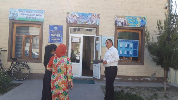 Joriy yilning 2-may kuni Farg‘ona viloyati statistika boshqarmasining “Ro‘yxatga olish jarayonlarini tashkil etish va uni o‘tkazish” bo‘limi boshlig‘i A.Abdurazakov, mazkur bo‘limning mutaxassisi G‘.Mamajonov hamda Uchko‘prik tumani “Tinchlik” mahalla fuqarolar yig‘ini faollari tomonidan mahalla xaritasiga kiritilgan o‘zgartirishlar yuzasidan ko‘chalar nomi belgilarining ilinganligi hamda raqamlanmagan uylarni xarita bilan solishtirish ishlari amalga oshirildi. Bundan tashqari, aholi o‘rtasida aholini ro‘yxatga olishning mazmun va mohiyatini tushuntirish ishlari olib borildi.