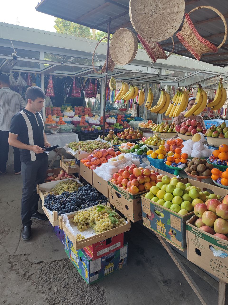 Joriy yilning 21-avgust kuni O‘zbekiston tumani statistika bo‘limi yetakchi mutaxassisi Sh. Murodov tomonidan O‘zbekiston tumani dehqon bozorida 12-bozor (oylik) tanlanma kuzatuvlari o‘tkazildi. Kuzatuv jarayonida un va un mahsulotlaridan tayyorlangan qandolat mahsulotlari, mevalar, sabzavotlar, poliz ekinlari va boshqa mahsulotlarini oy davomida o‘rtacha bir kunlik sotilgani mahsulotlar miqdorini aniqlash kabi ishlar amalga oshirildi.