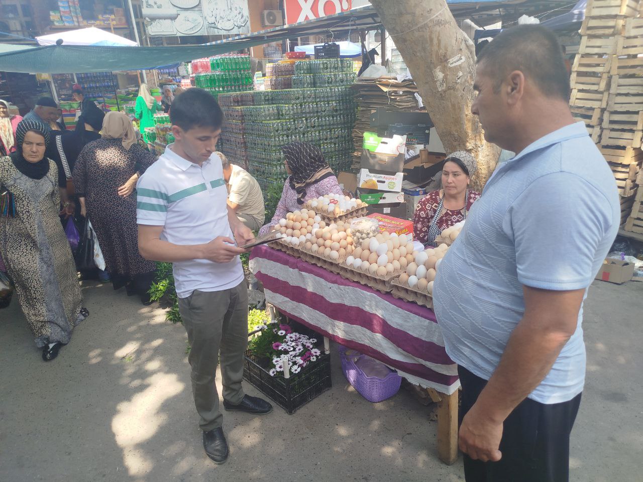 Joriy yilning 23-may kuni O‘zbekiston tumani statistika bo‘limi yetakchi mutaxassisi Sh. Murodov tomonidan O‘zbekiston tumani dehqon bozorida 12-bozor (oylik) tanlanma kuzatuvlari o‘tkazildi. Kuzatuv jarayonida un va un mahsulotlaridan tayyorlangan mahsulotlar, mevalar, sabzavotlar, tuxum va boshqa mahsulotlarining oy davomida o‘rtacha bir kunlik sotilgani miqdori va hajmi o‘rganildi. Olingan ma’lumotlar joyida planshet qurilmasiga kiritish ishlari amalga oshirildi. Bundan tashqari mazkur so‘rovnoma yuzasidan jismoniy shaxslarga tavsiyalar berildi.