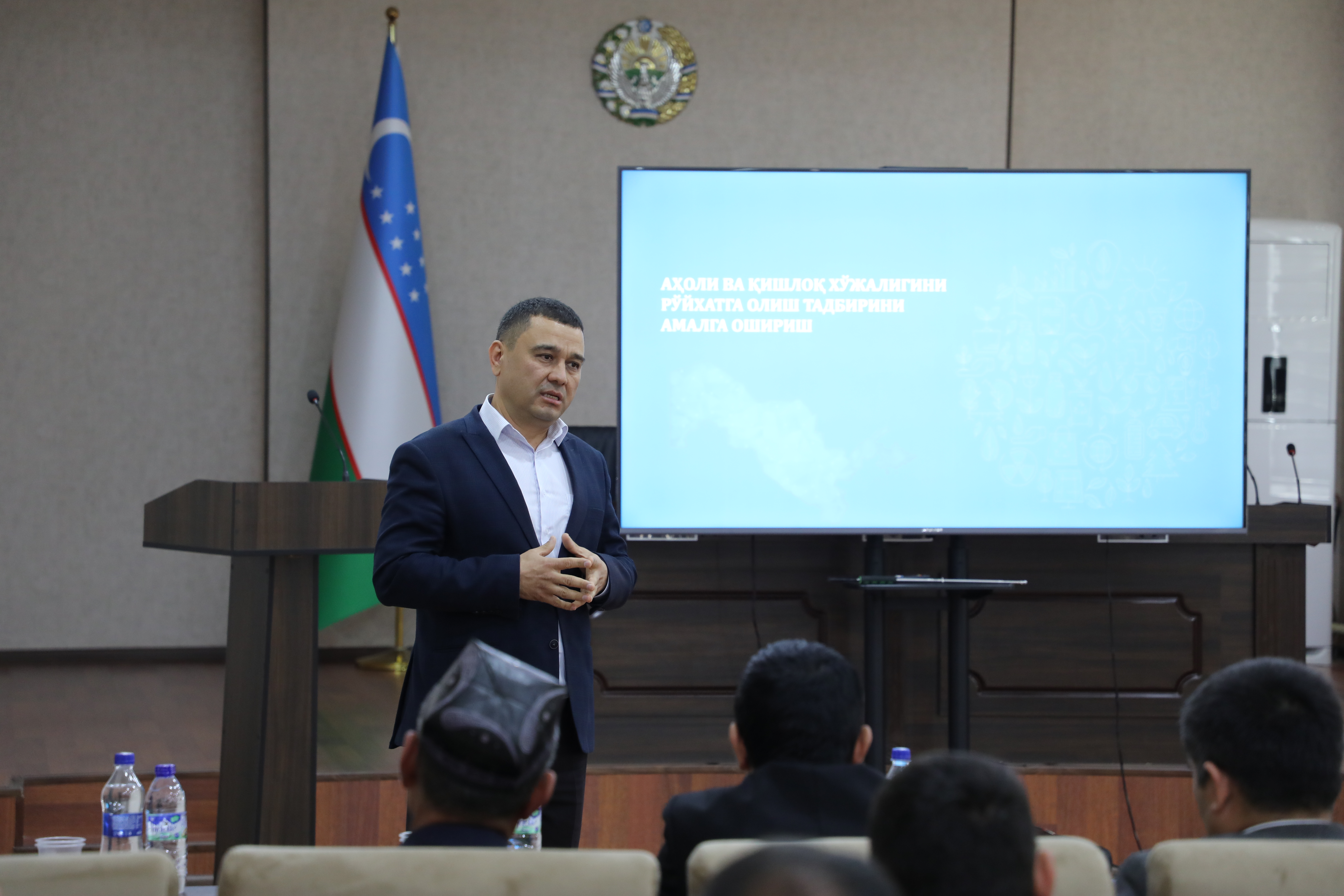 Seminarning asosiy masalasi O‘zbekiston Respublikasi Prezidentining 2025-yil 19-sentabr kuni qabul qilingan “O‘zbekiston Respublikasida aholi va qishloq xo‘jaligini ro‘yxatga olish tadbirini o‘tkazish to‘g‘risida”gi 173-sonli Farmoni hamda O‘zbekiston Respublikasi Vazirlar Maxkamasining 2025-yil 7-oktabrdagi 629-sonli Qaroriga bag‘ishlandi. Tadbirda Farg‘ona viloyati statistika boshqarmasi boshlig‘I Sh. Mamadaliyev so‘zga chiqib, qonunchilik xujjatlari yuzasidan ma’lumot berdi.