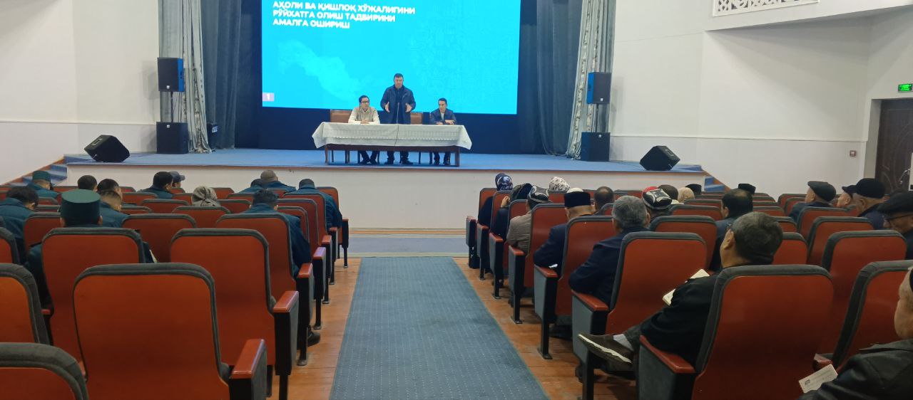 Aholi va qishloq xo‘jaligini ro‘yxatga olish tadbirlarini sifatli o‘tkazish maqsadida joylarda “mahalla yettiligi” ishtirokida o‘quv seminarlarning ikkinchi bosqichi o‘tkazilmoqda. Chunonchi, joriy yilning 10-noyabr kuni Beshariq tumanida mahalla raislari va profilaktika inspektorlari ishtirokida amaliy mashg‘ulotlar o‘tkazildi. Mashg‘ulot jarayonida maxsus platformaga kirish qoidalari, shakllarni to‘ldirish, ishtirokchilar tomonidan berilayotgan savollarga amaliy mashgulotda ko‘rsatib berish orqali tushuntirishlar berildi.