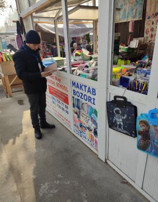 Joriy yilning 12-dekabr kuni O‘zbekiston tumani statistika bo‘limi yetakchi mutaxassisi Sh.Murodov tomonidan O‘zbekiston tumanidagi bozorlarda 4-jsh (choraklik) savdo faoliyati bilan shug‘ullanuvchi jismoniy shaxslar to‘g‘risida so‘rovnoma o‘tkazildi. Kuzatuv jarayonida oziq-ovqat hamda nooziq-ovqat tovarlarini sotuvchi jismoniy shaxslar soni, so‘rovnoma o‘tkazilgan bozorning bir oyda ishlagan kunlari soni, bozorda mavjud savdo joylari, bir kunlik tushum, oy davomida o‘rtacha bir kunlik daromadi o‘rganildi. Bundan tashqari mazkur kuzatuv yuzasidan intervyuyerlar tomonidan respondentlarga tushuntirishlar berildi.