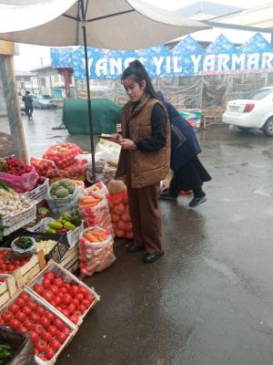 Joriy yilning 15-fevral kuni Uchko‘prik tumani statistika bo‘limi yetakchi mutaxassisi F. Qo‘chqorova tomonidan tumanda joylashgan dehqon bozorida “5 narx o‘rtacha xaftalik” joriy kundagi oziq-ovqat mahsulotlarining narxlari kuzatuvi o‘tkazildi.